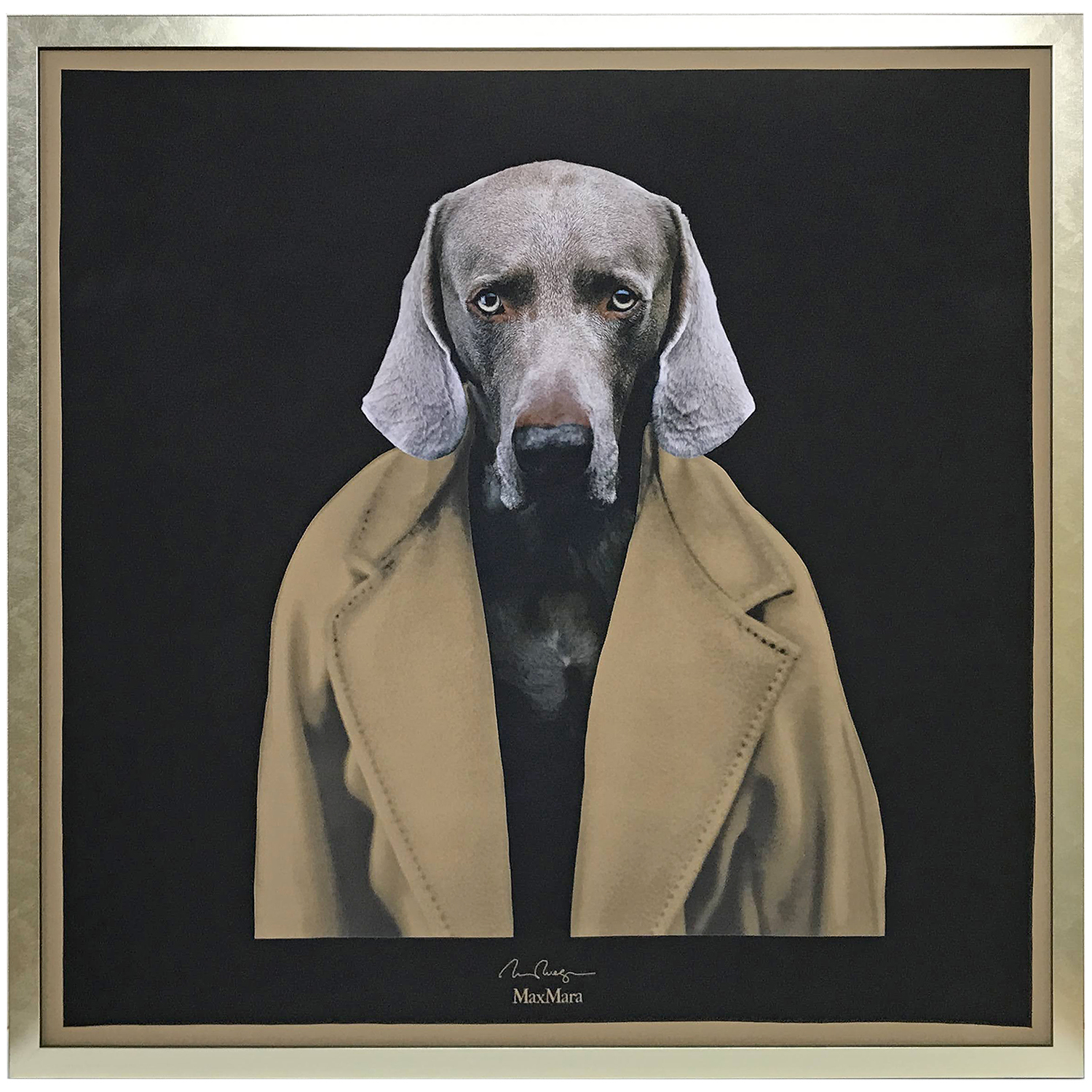 マックスマーラの象徴的なキャメルコート「101801コート」を羽織ったワイマラナーの写真が印象的なこちらのスカーフは、アメリカの現代アーティスト ウィリアム・ウェグマンによる写真作品をもとにデザインされたもの。