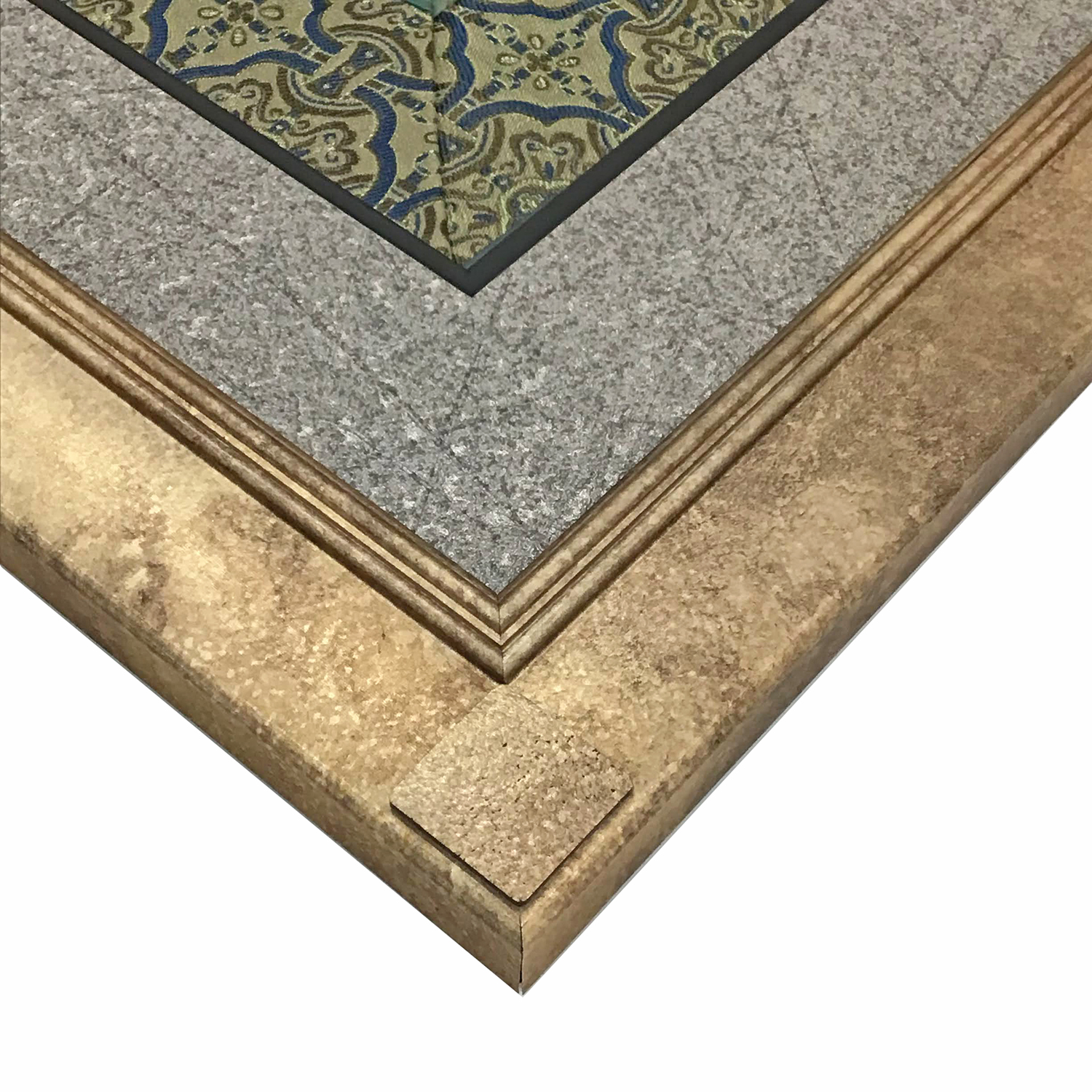 MH-E43K」のゴールド色を使用し、特寸でご用意しました。華やかで優雅な刺繍の雰囲気を増強するフレームです。マットは渋めで濃い色を使い、落ち着きを出しました。表面側から「