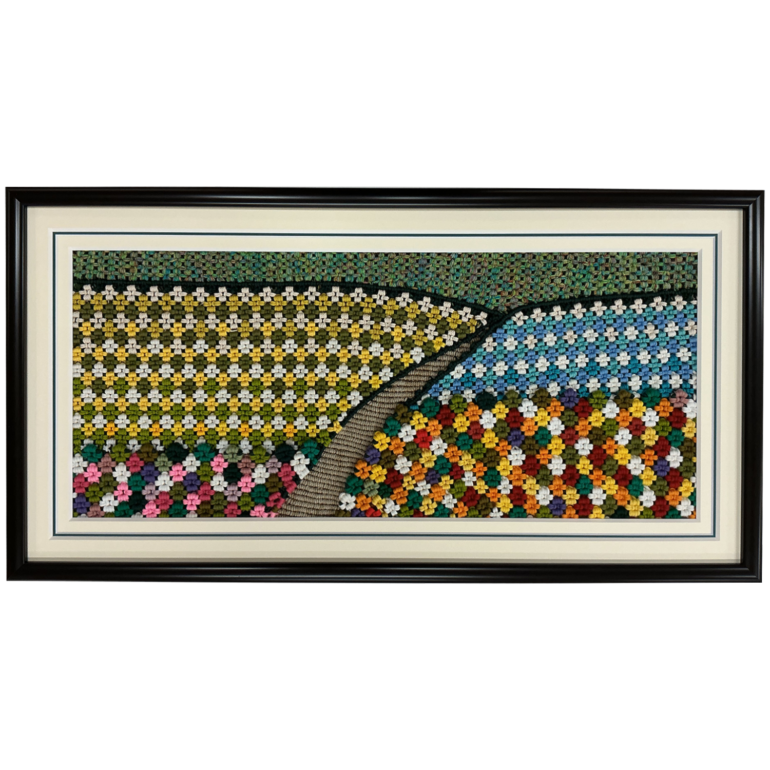 長年、松本店にご来店いただいているお客様のご依頼で額装させていただきました。お預かりしたのは風景をテーマにしたマクラメ作品です。