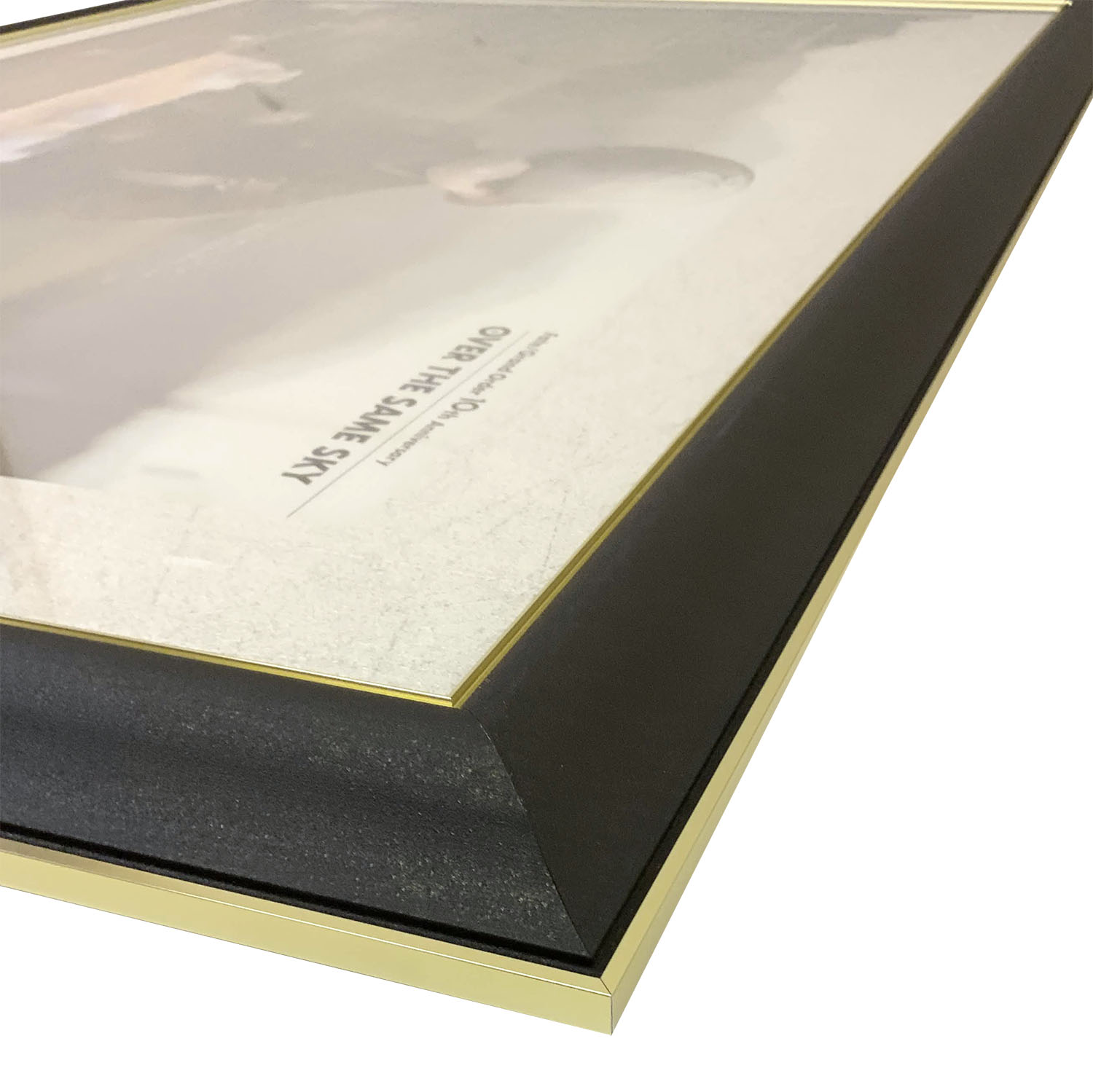 新聞は裏面の透けや、紙そのものの薄さが気になるところですが、それを裏打ちで解消しています。裏打ち用紙に黒色のものを使用することで裏面の透けを軽減しました。折れ目やしわも伸び、大きな和紙ポスターのような仕上がりになります。新聞を綺麗に飾るにはひと手間が必要ですが、大切な思い出やメッセージをこうして残すことは可能です。新聞も是非、額装という選択肢をご検討ください。