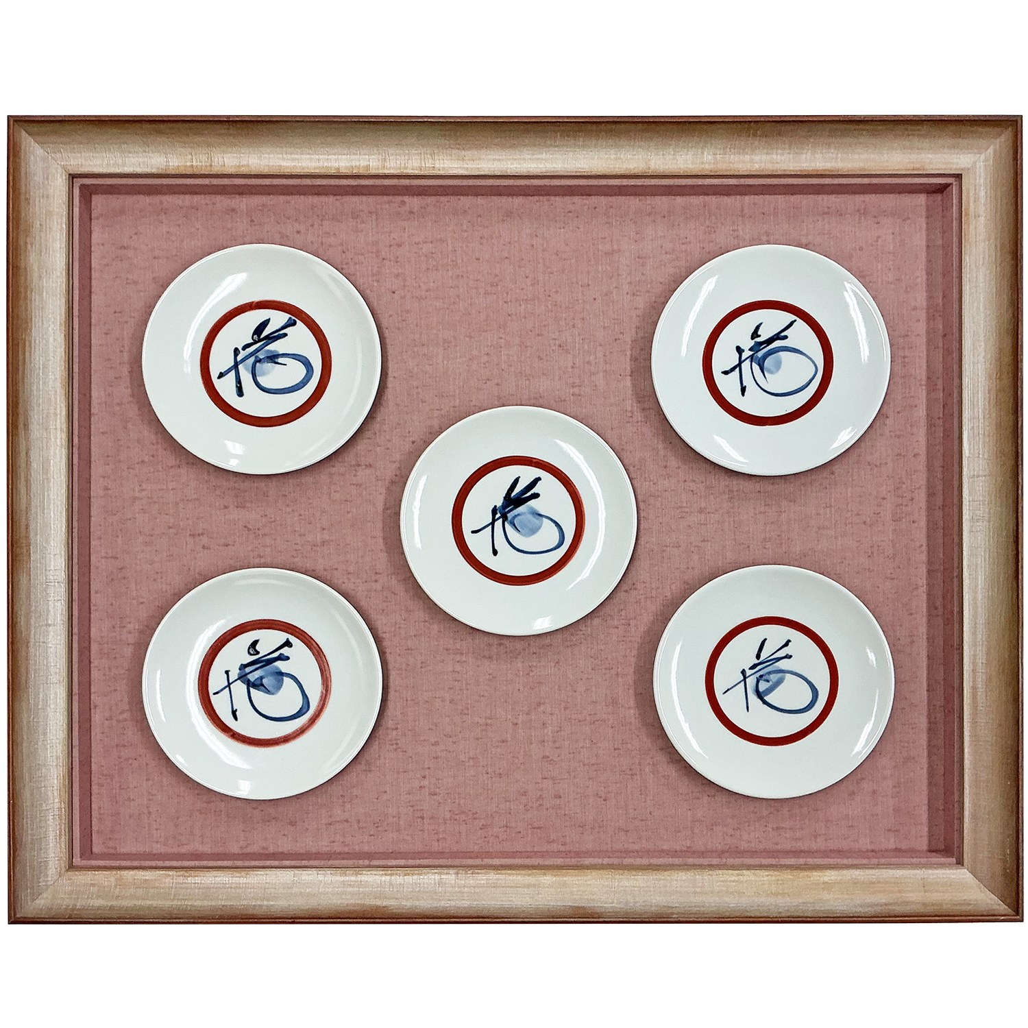 人間国宝・富本憲吉による「花字中皿」五客を額装しました。富本憲吉は近代陶芸の礎を築いた作家であり、色絵や文様に独自の美意識を込めた作品を多く残しています。