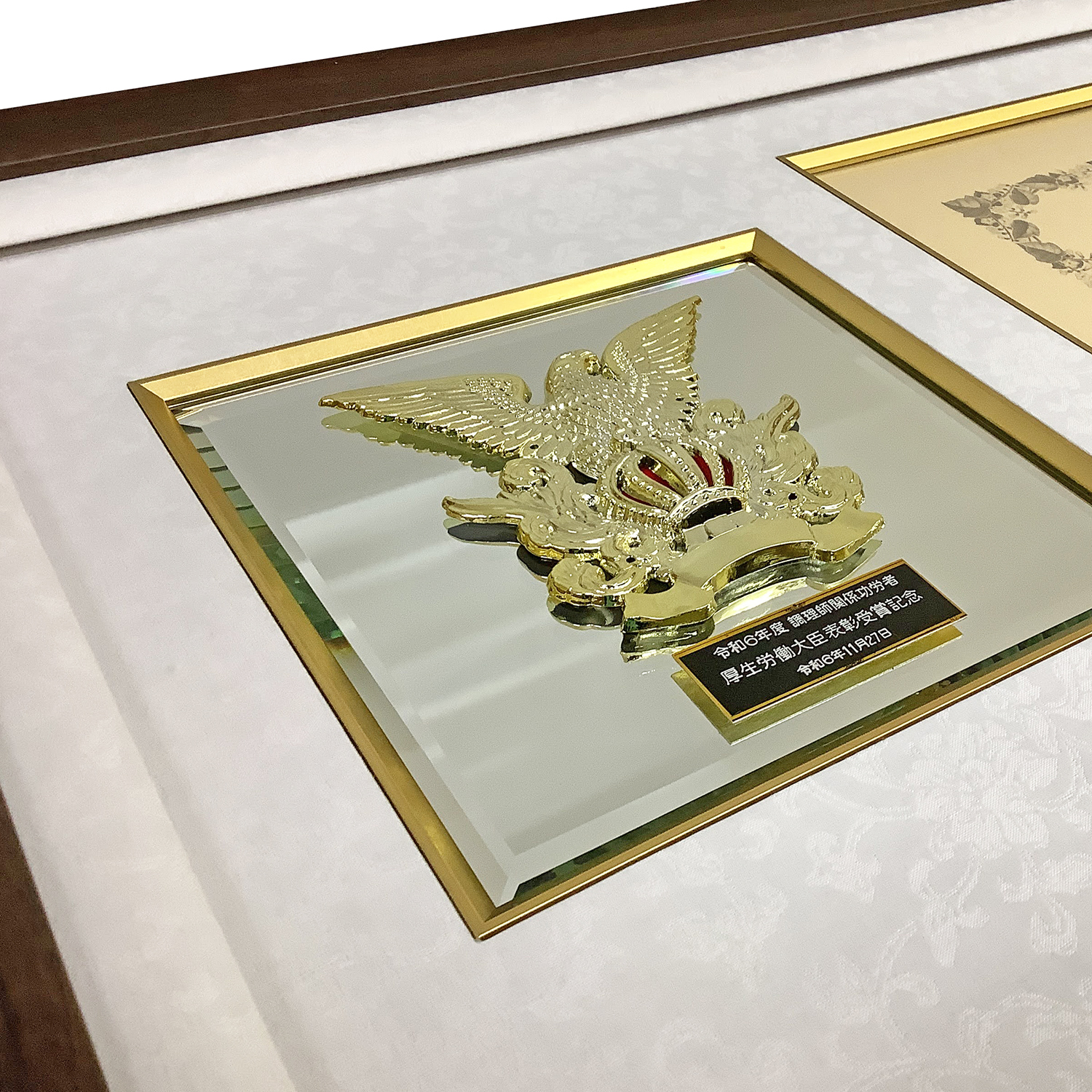 重厚なエンブレムの造形は職人の技術を感じさせ、表彰状の端正なレイアウトとともに、長く残したい価値を静かに語ります。