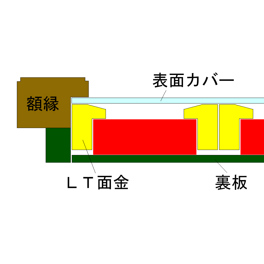 厚みのあるアクリルブロックをセットするため、キャンバス額などで用いられる「LT面金:ホワイト」を「田」の字の形に組み合わせて使用しました。アクリルブロックは両面テープなどで固定することができないため、はめ込んで飾れるような額縁が必要になります。こちらの額装例では独立した4つの窓を作ることで、アクリルブロックのそれぞれをぴったりとはめ込めるようにしました。アクリルブロックが整然と美しくレイアウトされる、工夫を凝らした額縁です。