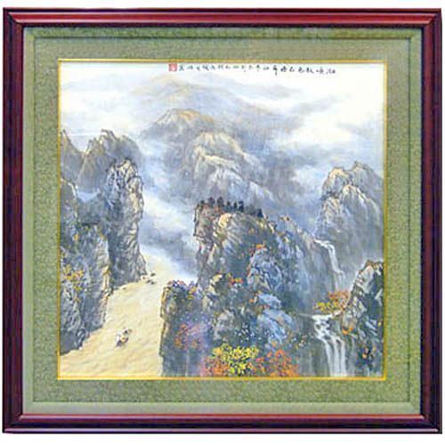 墨彩画をオーダー額に飾りました。フレームの内側に雲形と呼ばれる浮かし材を付けた、高級和額タイプの額装です。