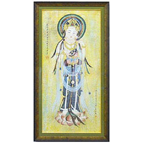 中国旅行で求めたという和紙に描かれた観音像。作品の色合いに合わせ、フレームを選択しました。大きな作品のため、裏打ちの上バックボードに張り込んであります。
