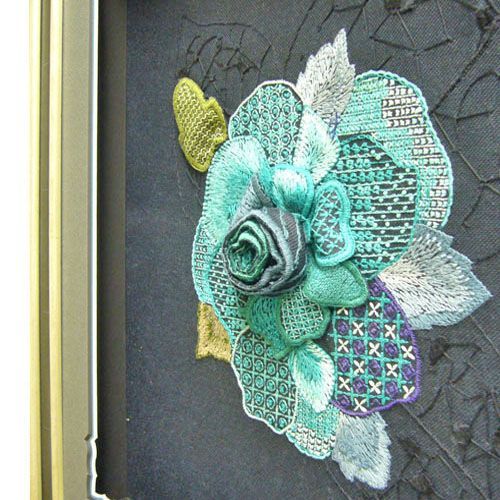 刺繍を和風に額装