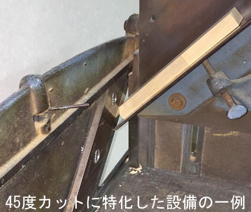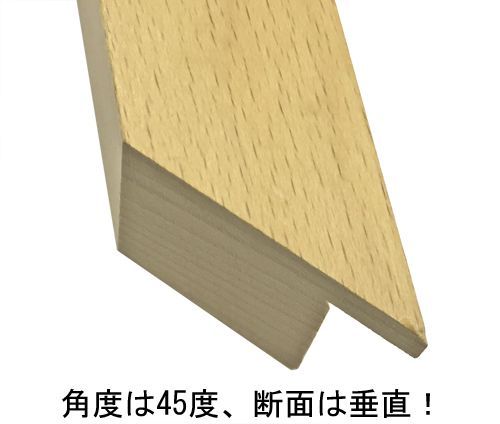 額縁の本体(大外のフレーム)は、棒状の4辺で形を成します。この棒状の部材4辺を組み合わせるには、部材を斜め45度にカットしなくてはなりません。この斜め45度のカットが、難度の高いハードルとなります。
