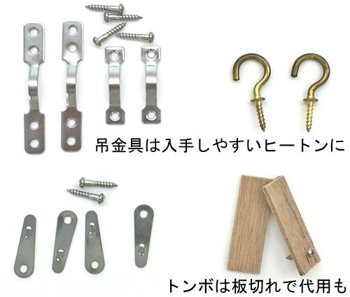 ・裏板となるベニヤ板、裏板を留めるトンボ金具など