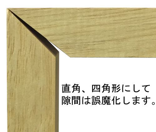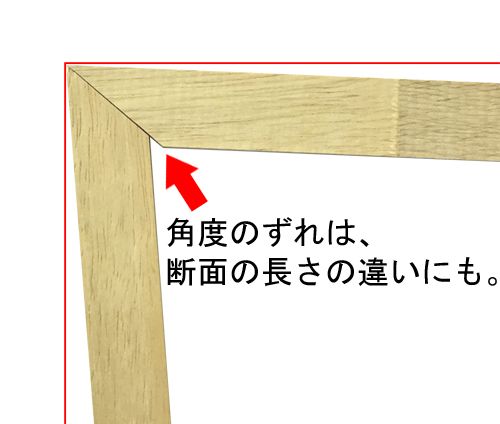 「自作にクオリティは求めないよ」という方、額縁にとってコーナーのずれは致命的です。ずれた角度を組み上げても、四角形にならないのです。額縁にとっては、ほんの少しの角度のずれでも致命的。たった1度のずれが額縁を大きく歪めます。