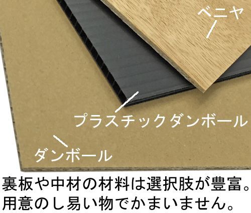 ・裏板となるベニヤ板、裏板を留めるトンボ金具など