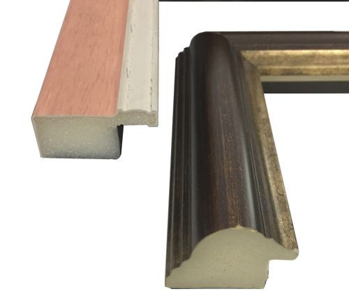 総じて、樹脂製の額縁に似た性質を持ちますが、樹脂と異なるのは加工のし易さです。フレームのかさ上げ、部材の付け足しなどが容易。加工の部材は主に木材を使用するため、元の材料を木材とするMDFと親和性が高いのです。