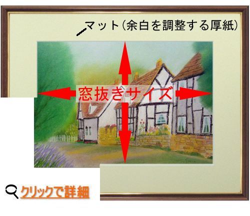 リトグラフ用の入力例としては、マットを[付ける]、マット幅は[50~80ミリ]、窓抜きの形状は[標準四角窓]、マット色は[クリーム10042]といったところが王道です。