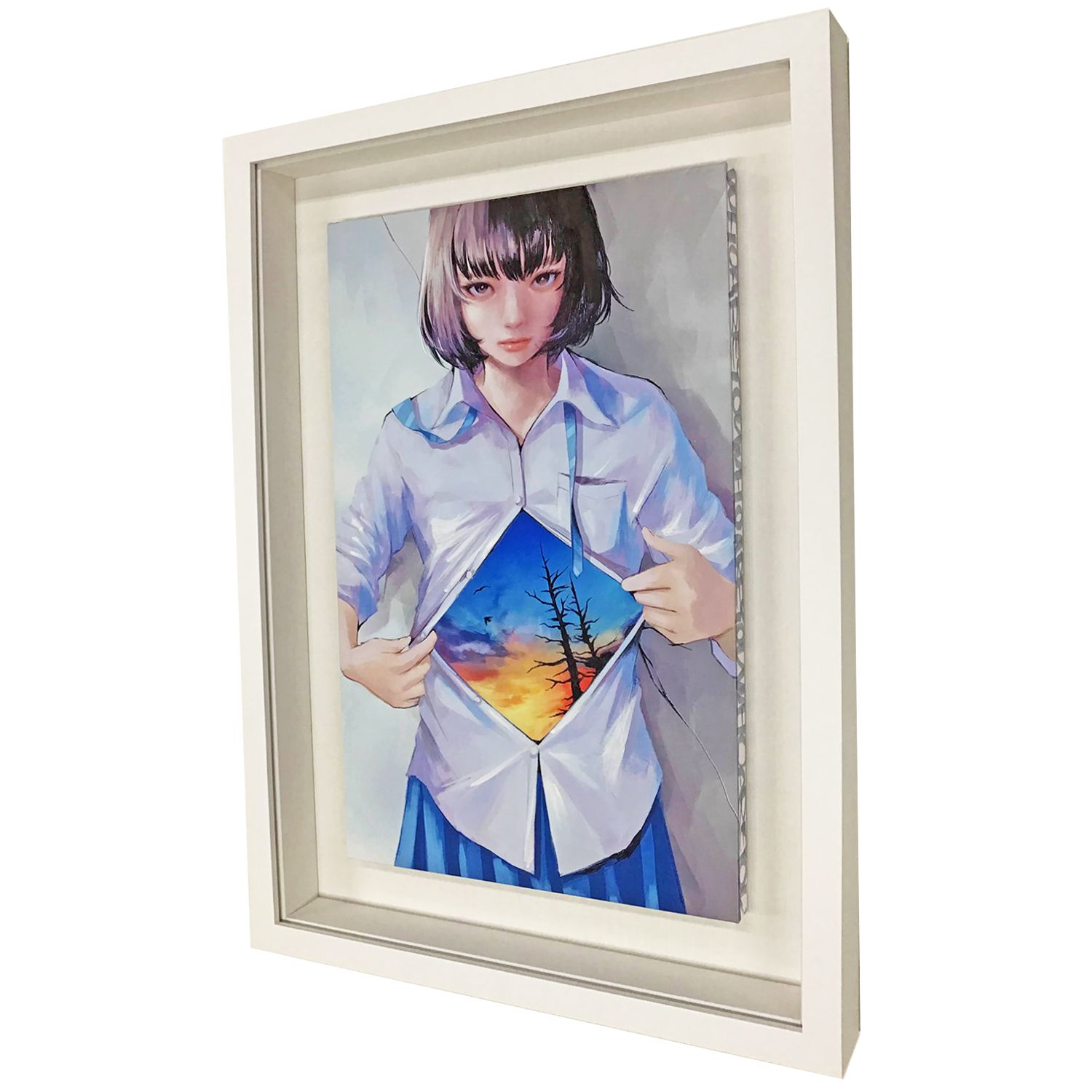 ジクレー画とは、簡単に言うとインクジェットプリンタを使った印刷技法です。原版を介して色を写し取る版画とは異なり、デジタルデータをダイレクトに吹き付けるため原版が存在しません。そういった意味では『版画』ではありませんが、ジクレー版画、デジタル版画といった呼び名も定着しつつあります。最新のコンピュータ技術で原画を精密に表現できるジクレー画は、世界中での高い評価を背景に、昨今のアート作品の主流となりつつあります。