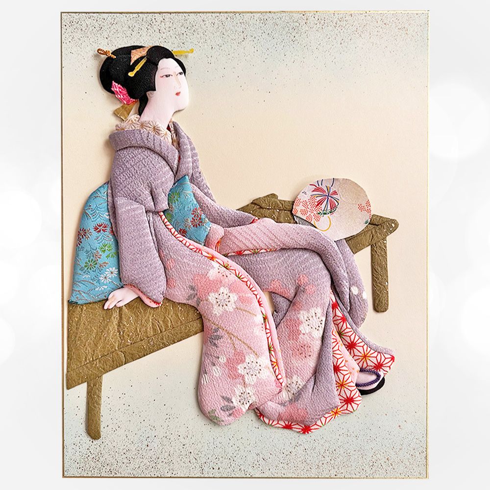 作品にとって、一番の大敵は紫外線です。額装のメリットは常に目に触れる場所に飾れることですが表面アクリルで紫外線をカットできるという面でも優れています。保管と鑑賞を兼ねられるのが額装の魅力。押絵の布の綺麗な色合いをいつまでもお楽しみいただけます。