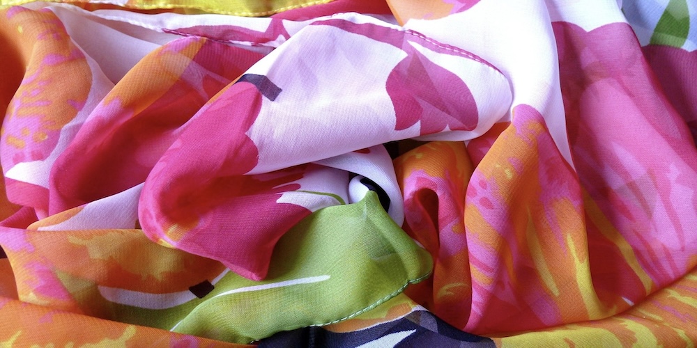 折り紙をたたんだような完全な折り目の付いたスカーフがあります。これはアイロン線と呼ばれ、スカーフを巻く時のガイドに使われるようです。