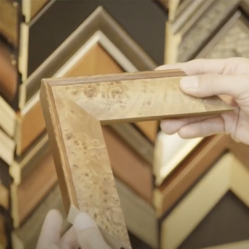 インテリアを統一している場合などは、お部屋のコンセプトに合わせた額縁を選んでもらってかまいません。お部屋全体とのマッチングも大切な要素です。建具や床の色合い、また部屋全体の色調やテイストを考慮して、フレームの色や形状を決めていきます。