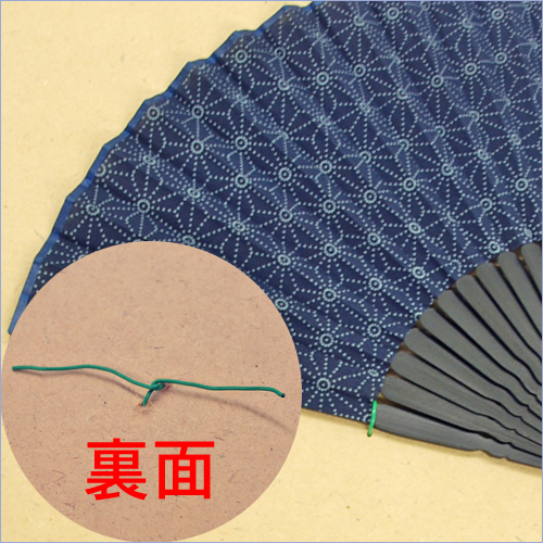 形の定まらない物の固定には、紐・ゴム・針金で縛るのがおすすめです。例えば扇子など貼り付ける場所が無い品物は、骨の部分を縛って固定するのがセオリーです。裏板にキリで穴を開け、紐を通してください。軽いものなら2箇所も縛ればOKです。