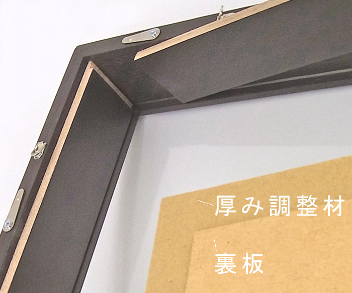 フレーム自体の深さをいかして立体額を作ります。フレーム高さの中で完結するので、裏面や側面の見た目がすっきりするのがメリット。