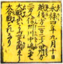 | 外題の右より ・天文二十三年八月甲州方二万騎越後万八千騎南原にて大戦す ・弘治二年三月下旬越後方八千余騎甲州方一万余騎佐久郡犀川にて接戦 ・永禄四年九月十日越後方一万二千人甲州方二万人信州川中島にて大戦におよぶ世にきこえし大合戦これなり |