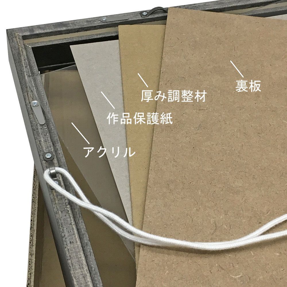 表記寸法は「額縁の内寸法」です。これは深さを支えるパーツを除いたフレーム内側の寸法です。ほぼ表面カバーや裏板寸法とお考えください。