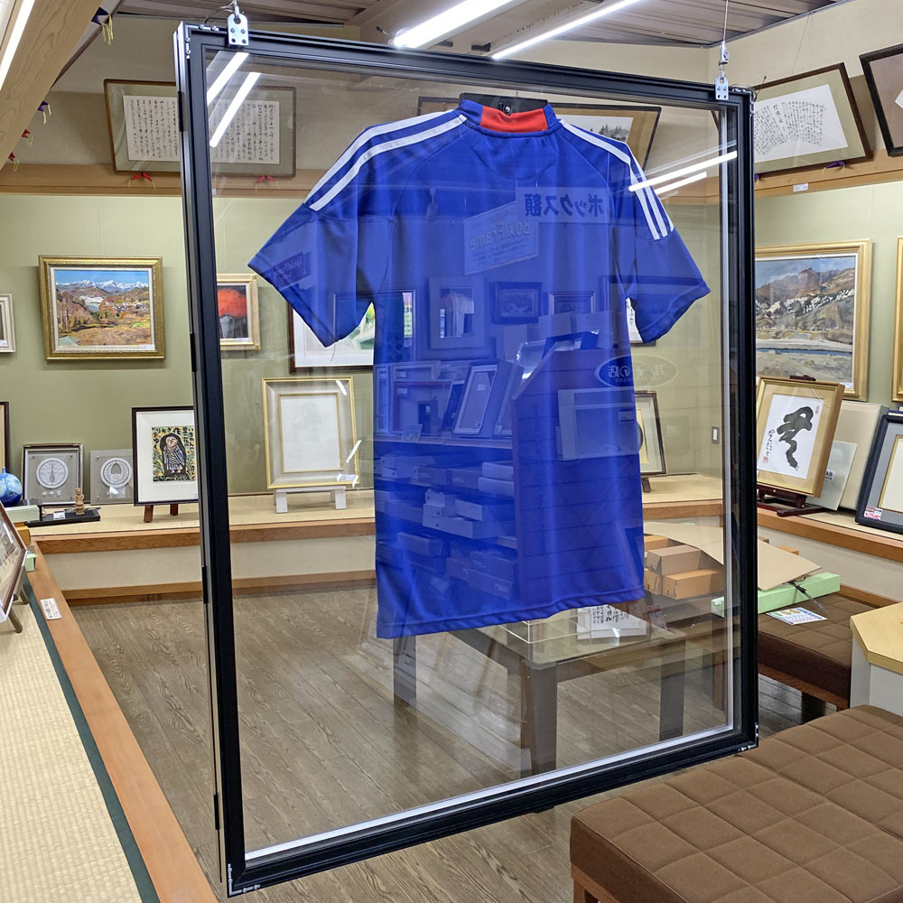 両面アクリルを採用し、背中も見えるユニフォーム額