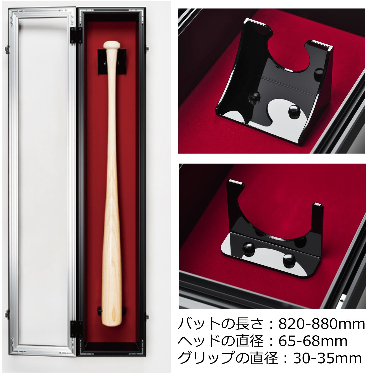開閉式の扉の付いた野球バットの専用フレーム。