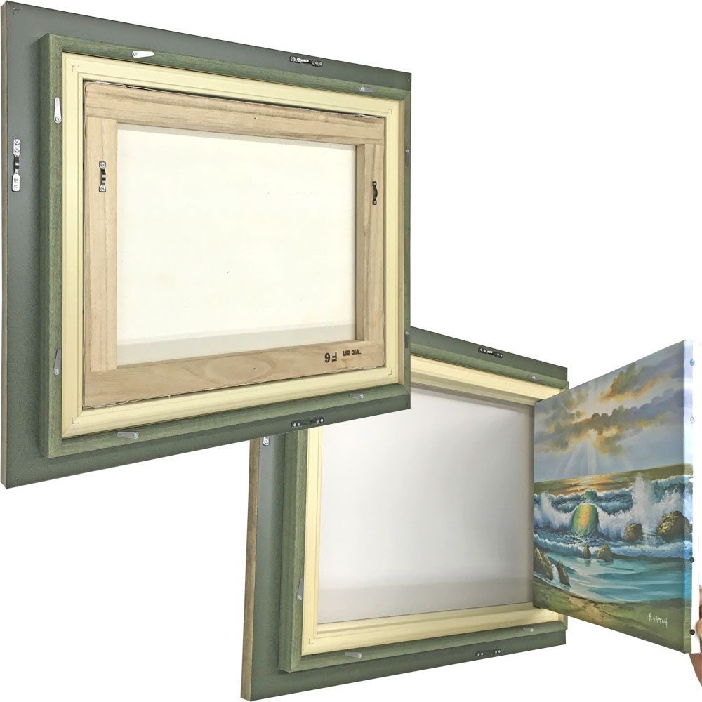 油絵額は絵画規格サイズで作られています。飾る作品と同サイズの額縁を選びましょう。はめ込み部分にはゆとりがあるので、1-2mmの誤差は問題ありません。セット方法については、こちらの動画でご紹介しております。