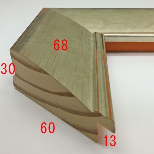 木製(パイン材)、オーダー製作専用フレーム。下地のオレンジを磨きだした、シルバー塗装。