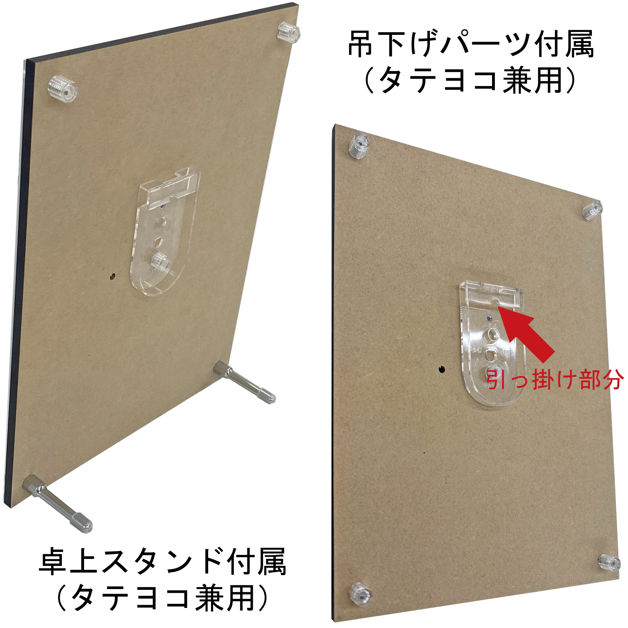 スタンドと吊下げパーツが付属しますので、卓上・壁面のどちらにも飾れます。