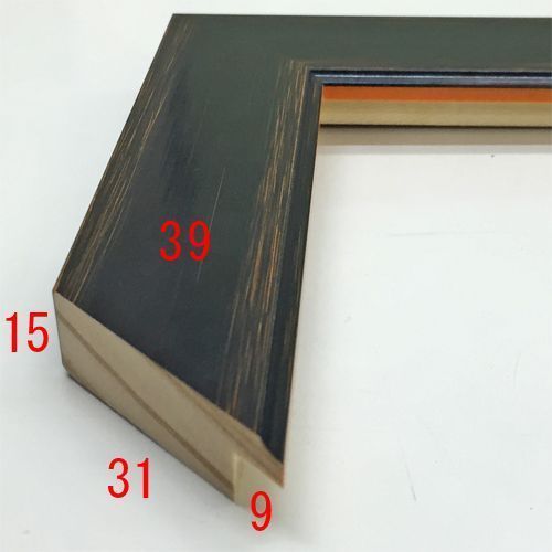 木製(パイン材)。オーダー製作専用フレームです。下地のオレンジが見え隠れするブラックフレーム。