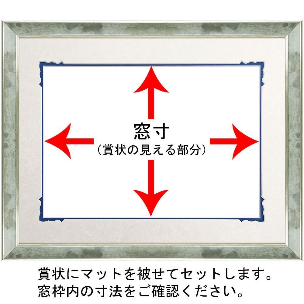 この額縁は窓抜きされたマットが付属します。デザインカットが施されたマットで、大切な賞状を格調高く飾りましょう。 賞状にマットを被せて額縁にセットします。下部表のマット窓抜寸法をご確認ください。「窓寸」が賞状の見える部分になります。賞状固定用の専用テープも付属しますので、マット裏面に賞状をセットしてください。