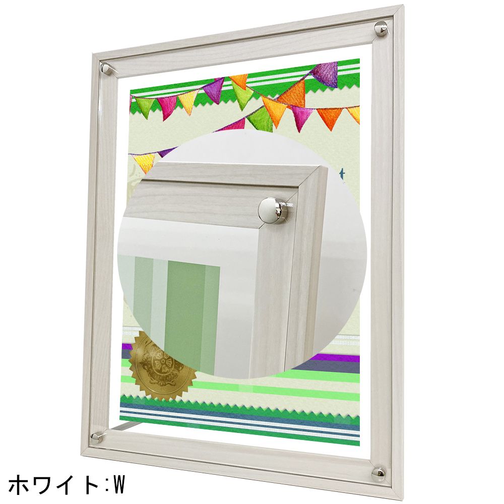 有効画面寸法までの大きさの紙が飾れます。下部表の有効画面寸法をご参照ください。適用用紙サイズに比べて若干の余裕がありますが、有効画面寸法ぎりぎりの大きさの場合、紙の周りにアクリルの透かし部分が隠れてしまいます。 こちらの商品は特注サイズの製作ができません。適合サイズが無い場合、飾るお品物のカットもご検討ください。