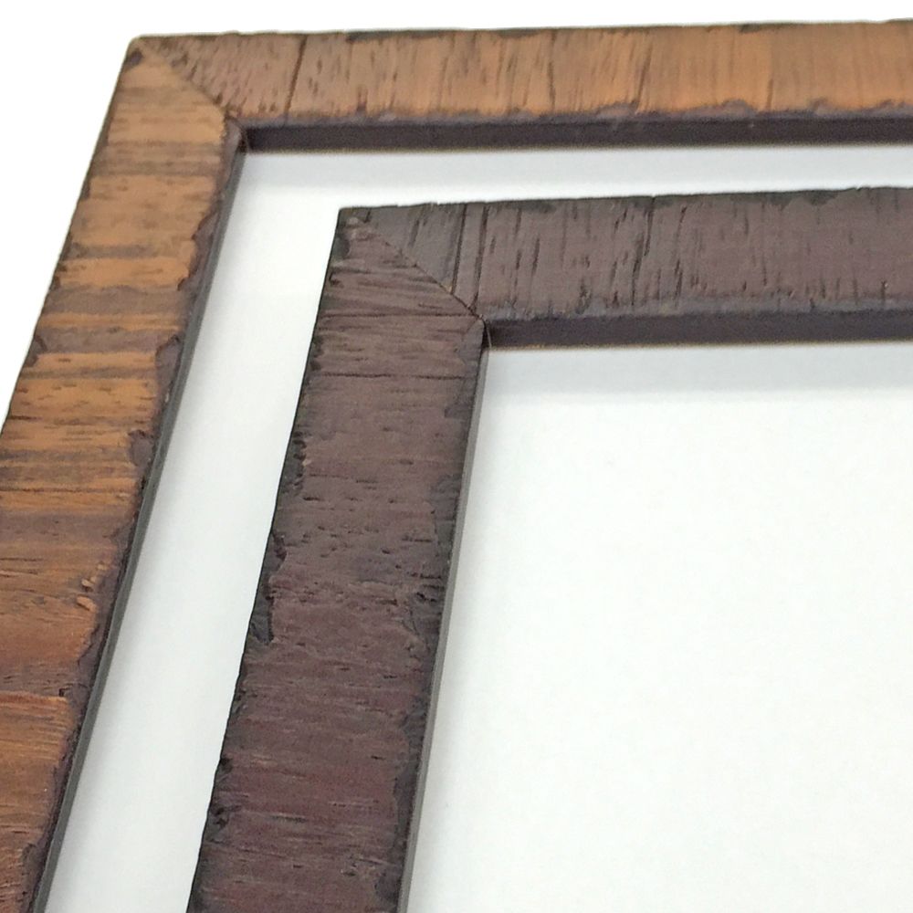 木の皮のような質感の額縁です。