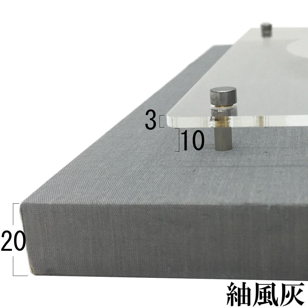 京都産の布地張りパネルに、アクリルを浮かせて固定しました。