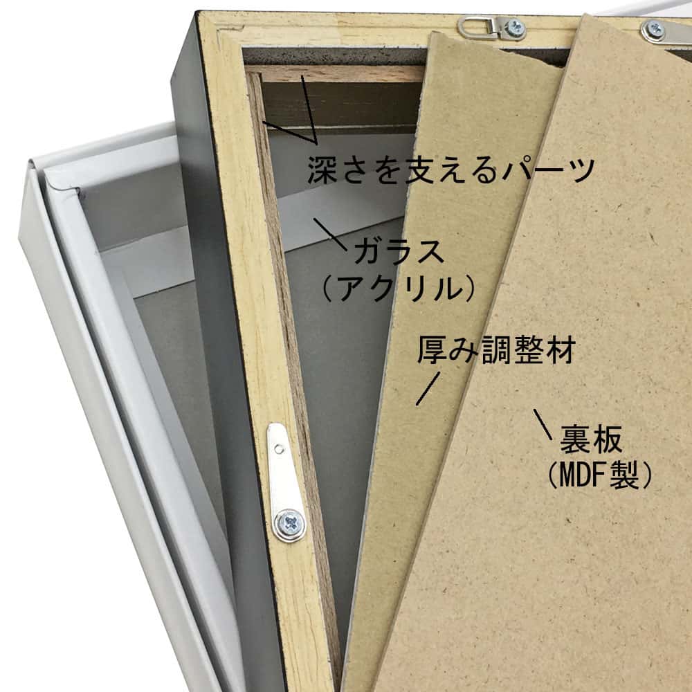 紙などの薄い品物を入れる額縁の他、