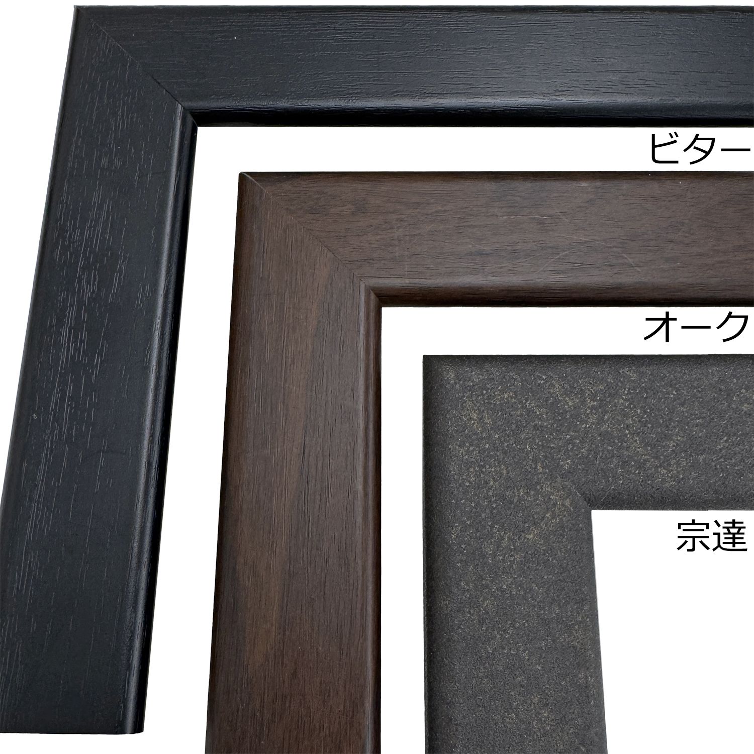 シルバー色はつや消しの銀、ビター色は薄っすらと木目の見える黒、