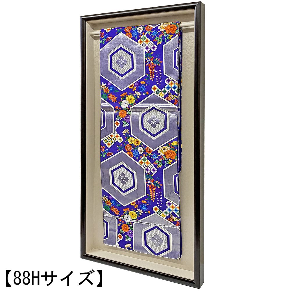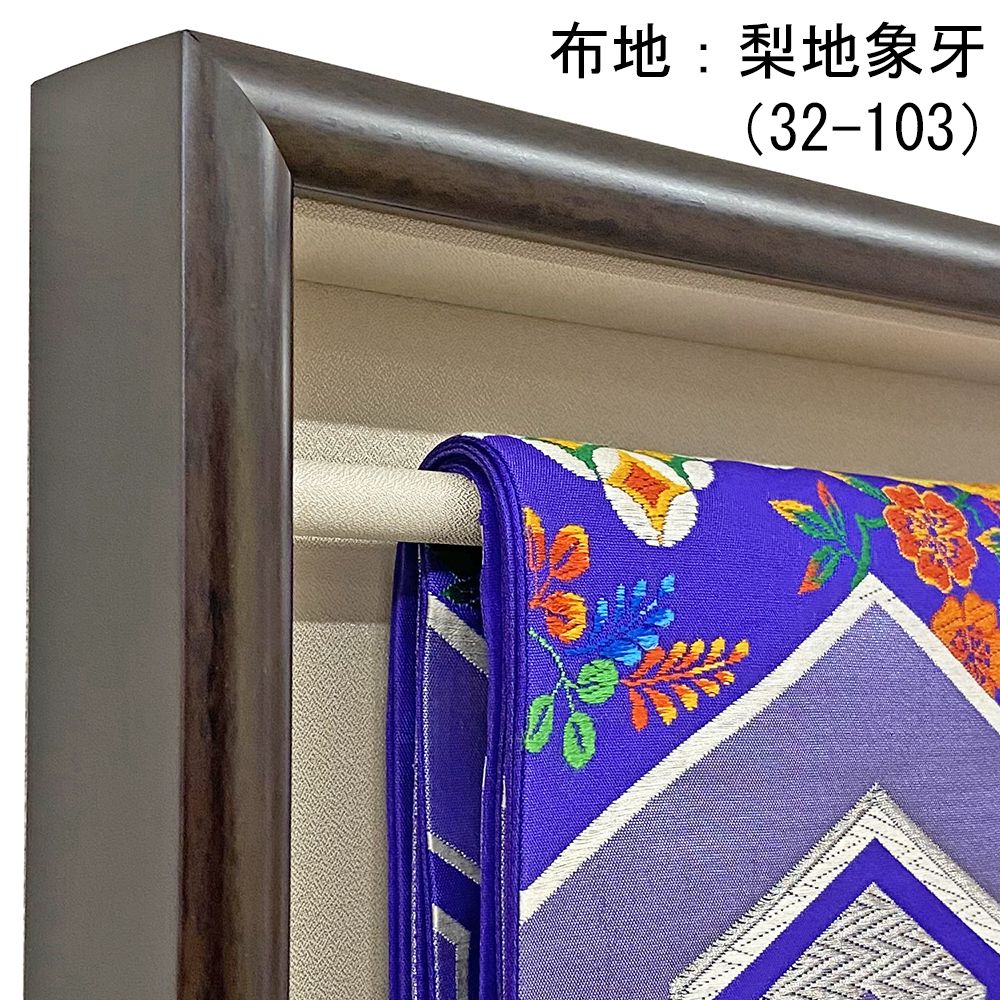 着物の帯地をぶら下げて飾れる、当社オリジナルの額縁です