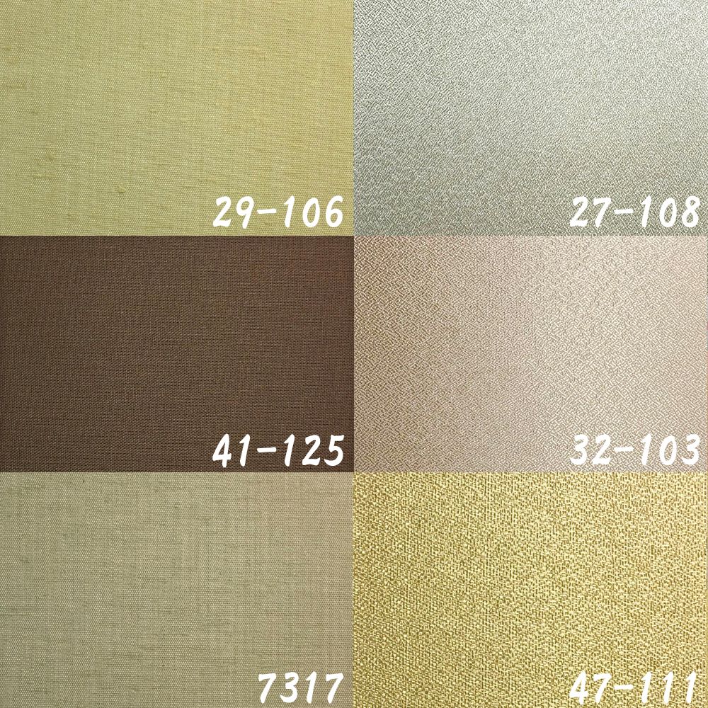 おすすめの布地はこちらの6色です。画像左側の3色は紬風の素朴な味わい、右側の3色は上品な光沢を放つ梨地調の布地です。