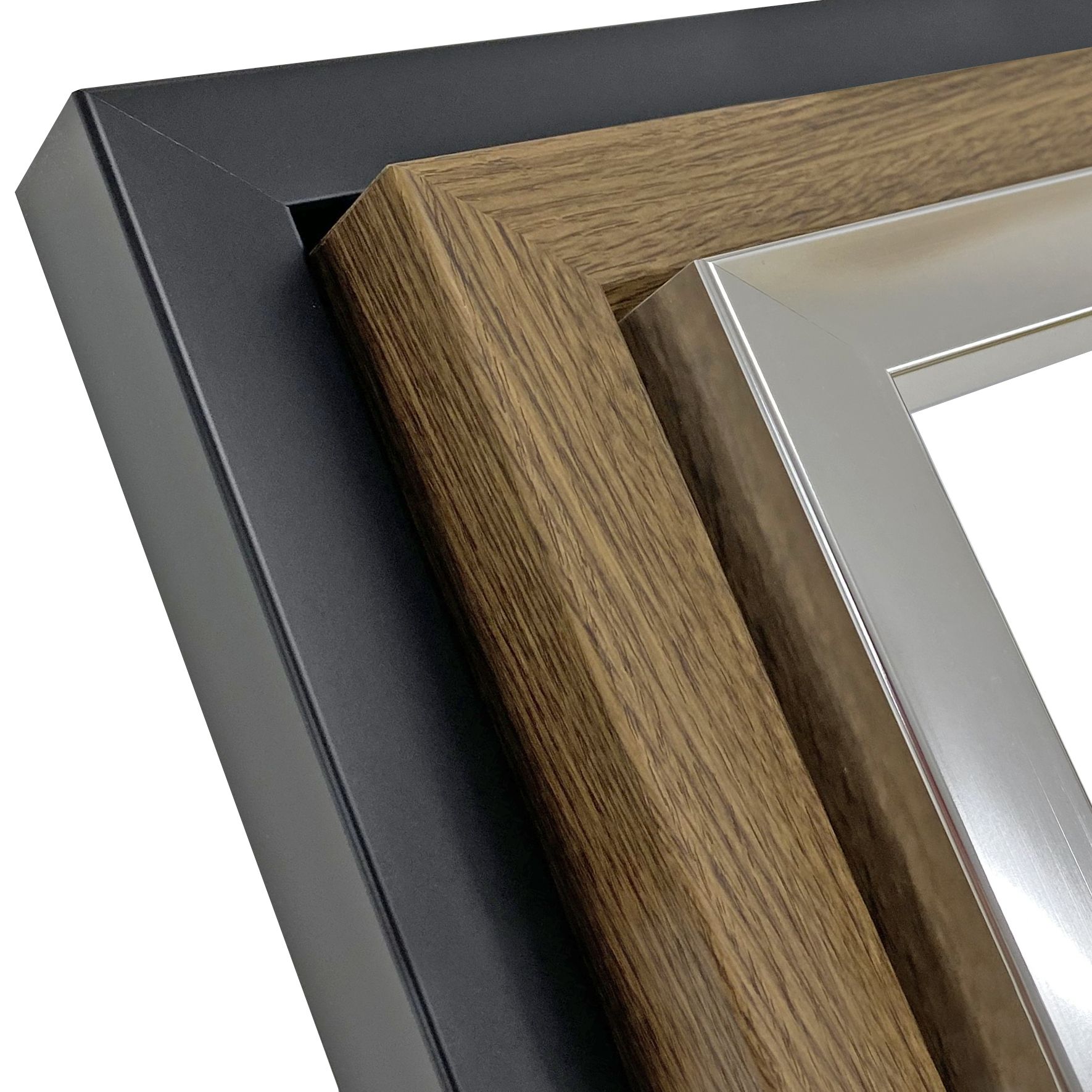 大サイズに対応する、すっきりシャープな角型の額縁。