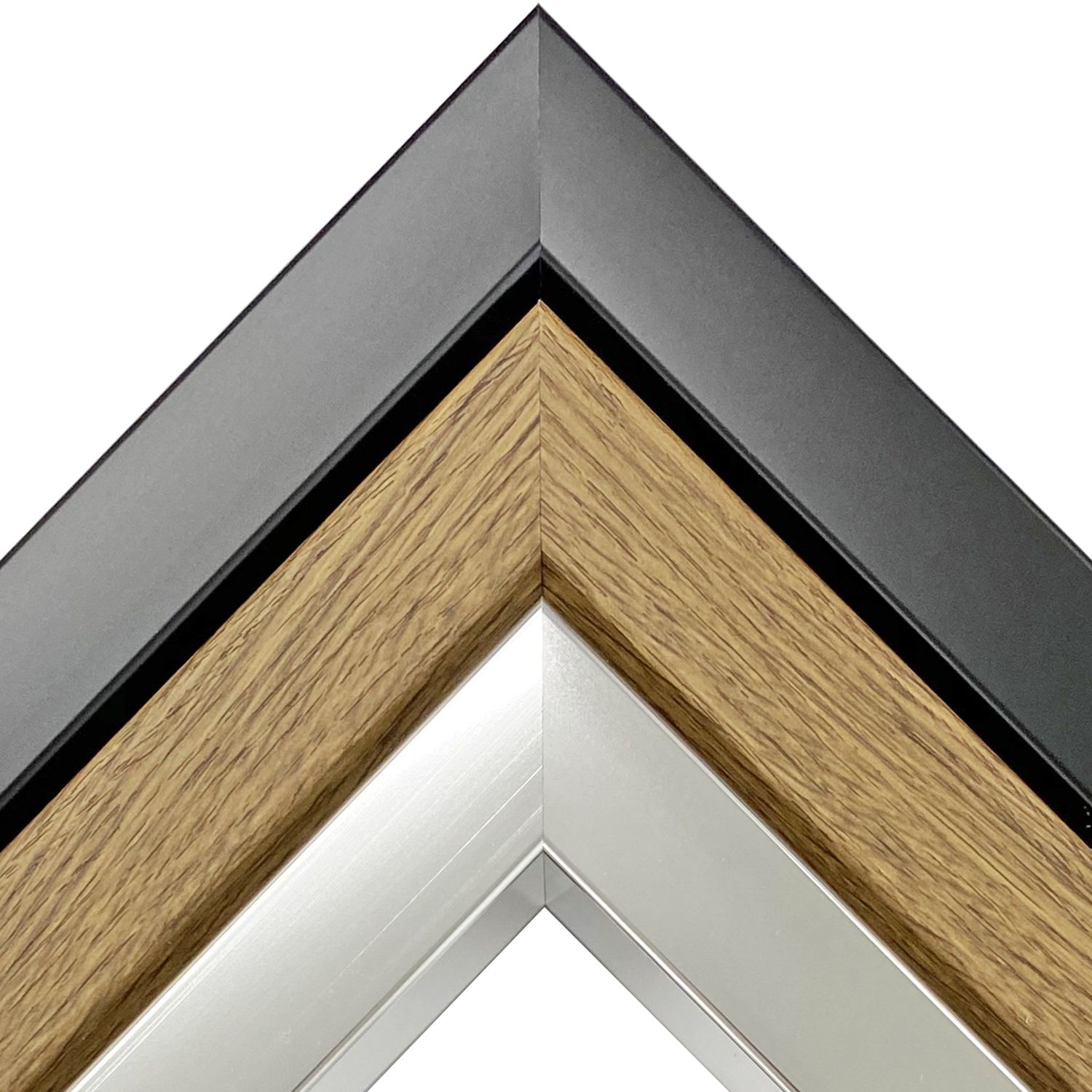 大サイズに対応する、すっきりシャープな角型の額縁。