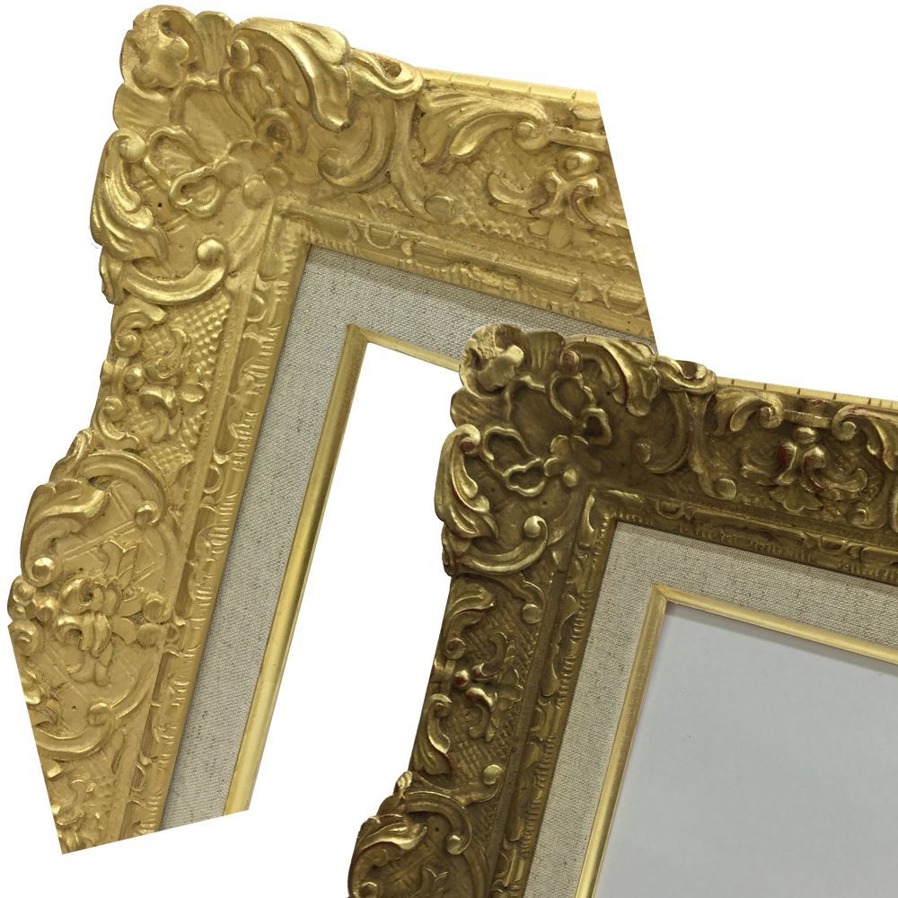 密集した彫模様が目を引く、ルイ調の油絵額
