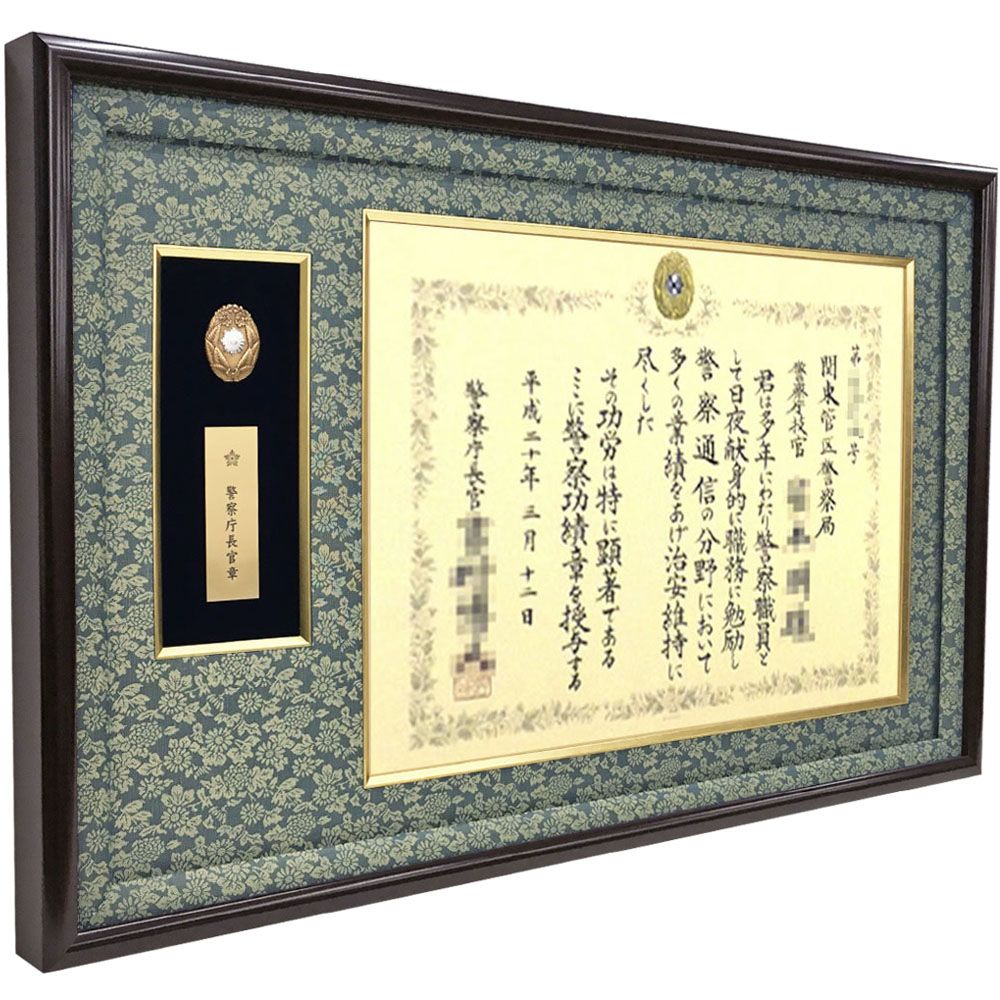 当店オリジナル、警察功績章や功労章が飾れる専用額です