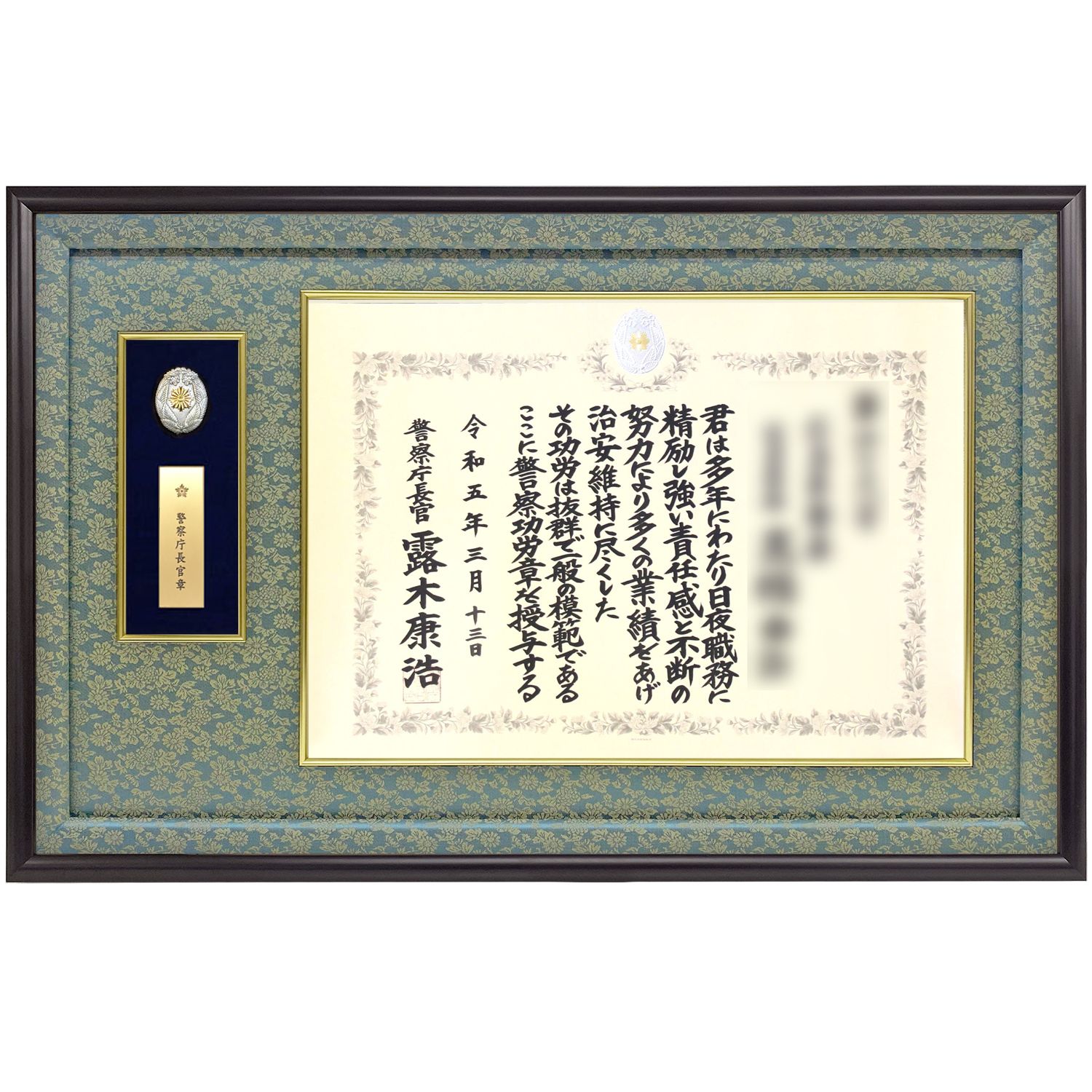 当店オリジナル、警察功績章や功労章が飾れる専用額です