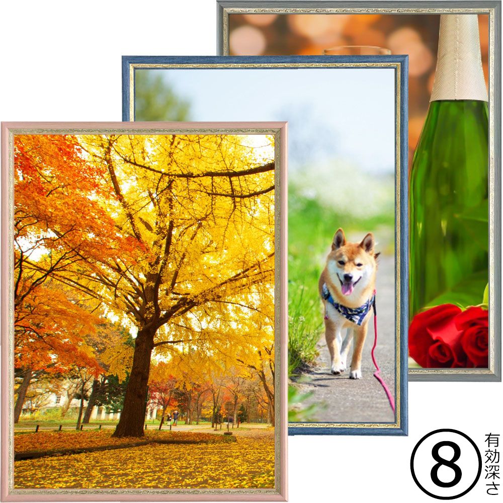 彩りのある額装に仕上がる樹脂製フレームです。