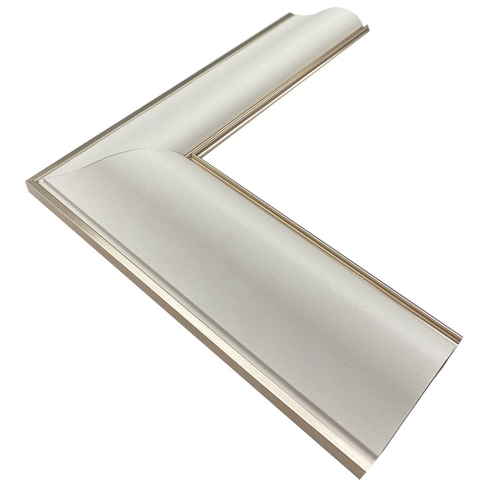 規格品もあるHVLを特注サイズでご用意。なだらかなカーブを描くアルミ製の額縁です。マットな艶無しのホワイトフレーム。木材に比べ、均一で安定した品質、色合いを誇ります。