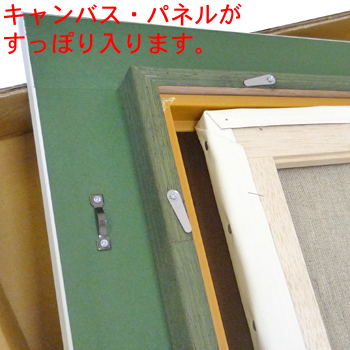 油絵額は絵画規格サイズで作られています。飾る作品と同サイズの額縁を選びましょう。はめ込み部分にはゆとりがあるので、1-2mmの誤差は問題ありません。セット方法については、こちらの動画でご紹介しております。 構造上、収納部のサイズ調整は困難です。規格外の作品には、こちらから特注サイズでご注文ください。