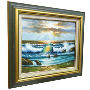 盛り上がったゴールドの縁飾りが目を引く油絵額。