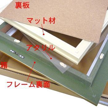 油絵額は絵画規格サイズで作られています。飾る作品と同サイズの額縁を選びましょう。はめ込み部分にはゆとりがあるので、1-2mmの誤差は問題ありません。セット方法については、こちらの動画でご紹介しております。