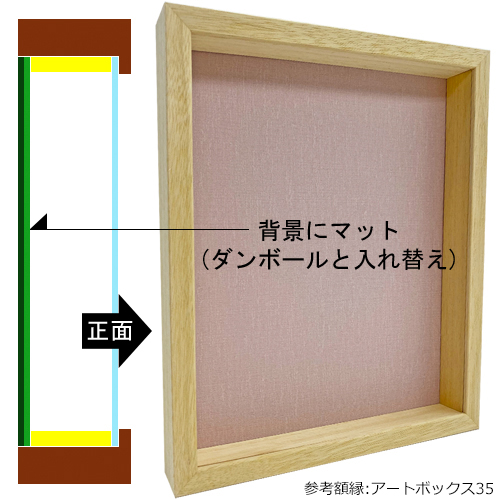 額装マットは1.5ミリ厚程度の厚紙です。[背景として使う] [窓抜きして前面に使う] など、立体額の可能性が大きく広がります。