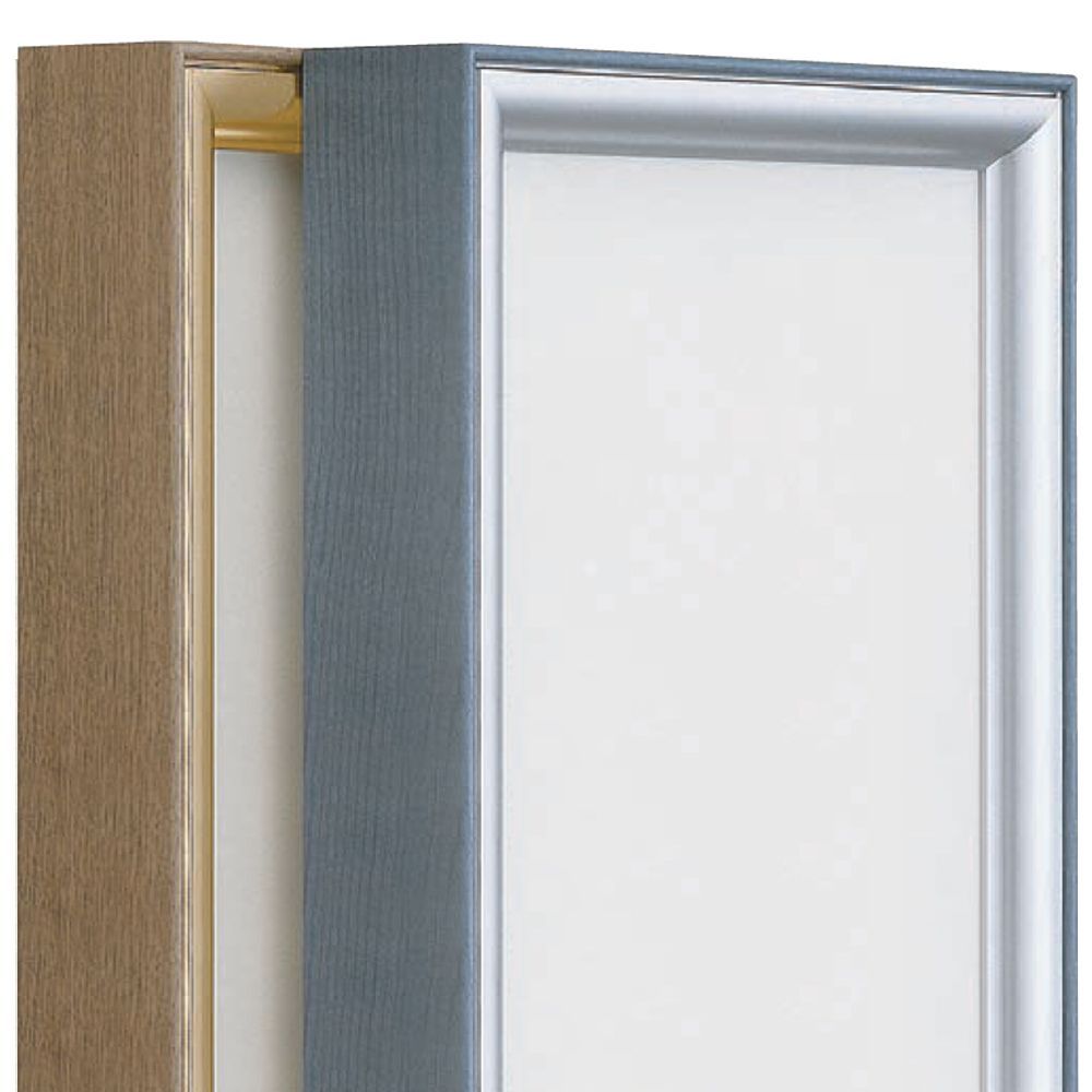 仮縁は枠だけの組立式。表面カバーなどは付属しない、厚みのあるキャンバスやパネル専用の額縁です。それ自体で平面性を保てない、紙などの薄い品物には使えません。 ご指定の寸法での特注製作も承っております。こちらから寸法入力をお試しください。